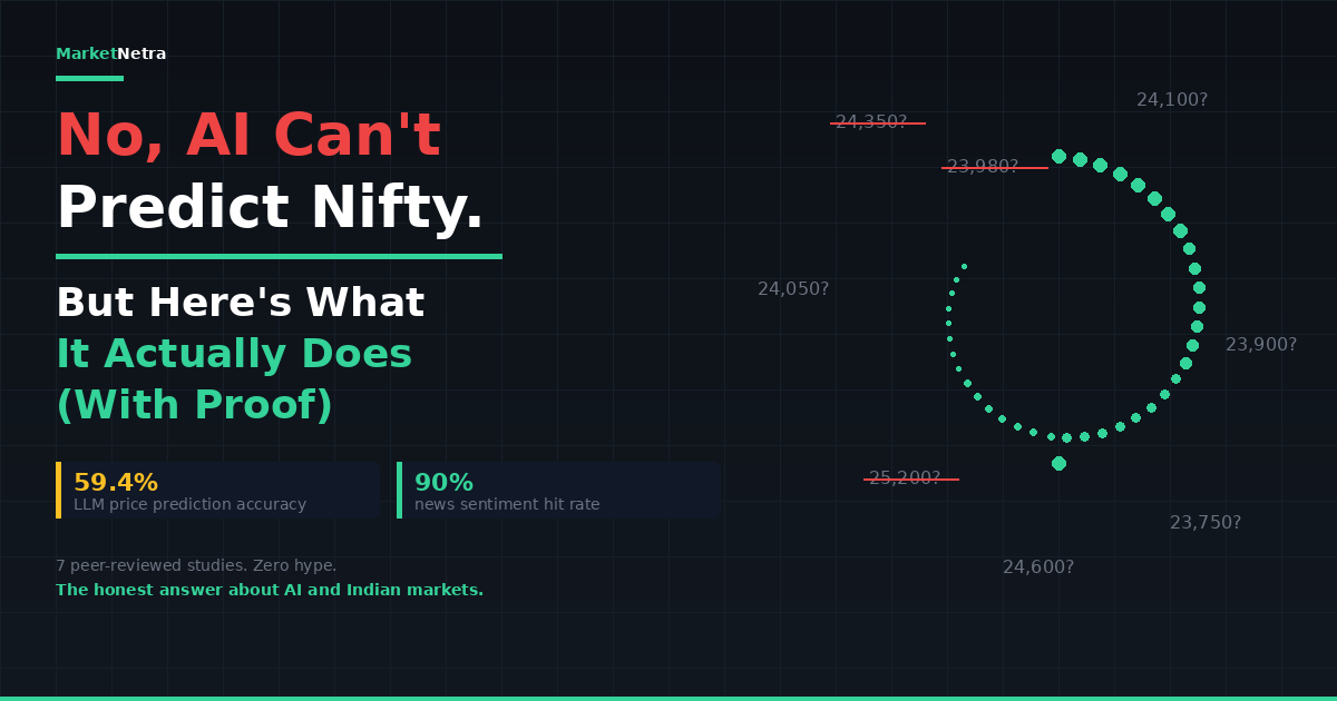 No, AI can't reliably predict Nifty's closing price. But 7 peer-reviewed studies reveal what it actually does well — and it's more useful than prediction. The honest answer for Indian traders.