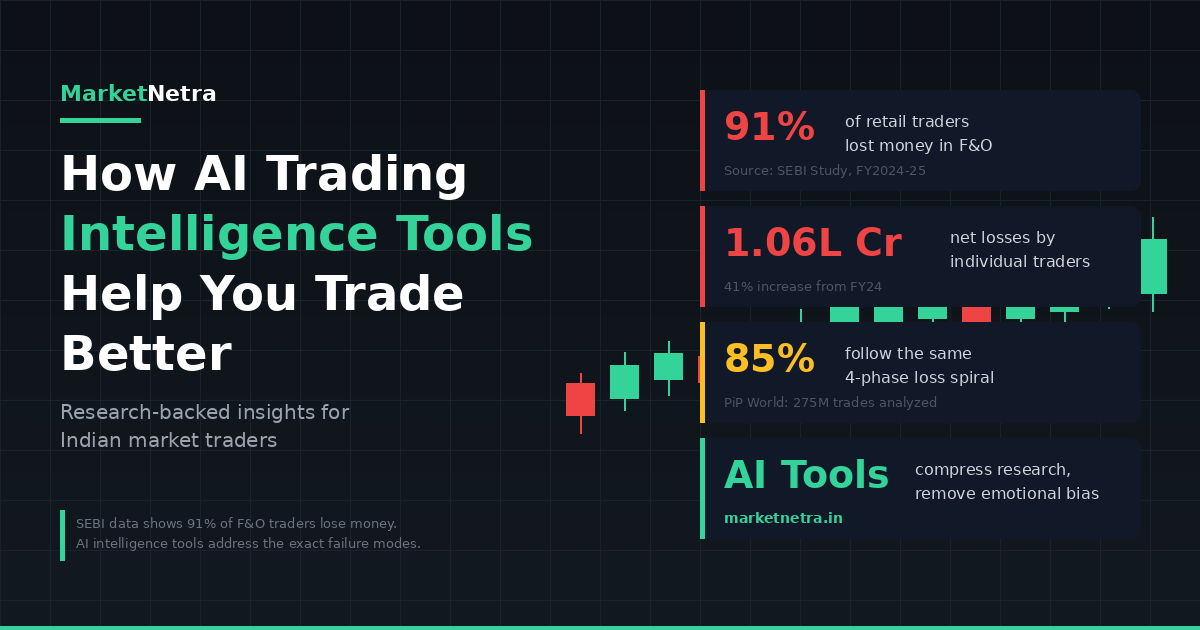 91% of Indian F&O traders lost money in FY2024-25. The problem isn't lack of data — it's emotional biases and poor synthesis. Here's how AI trading intelligence tools address the exact failure modes the research identifies.