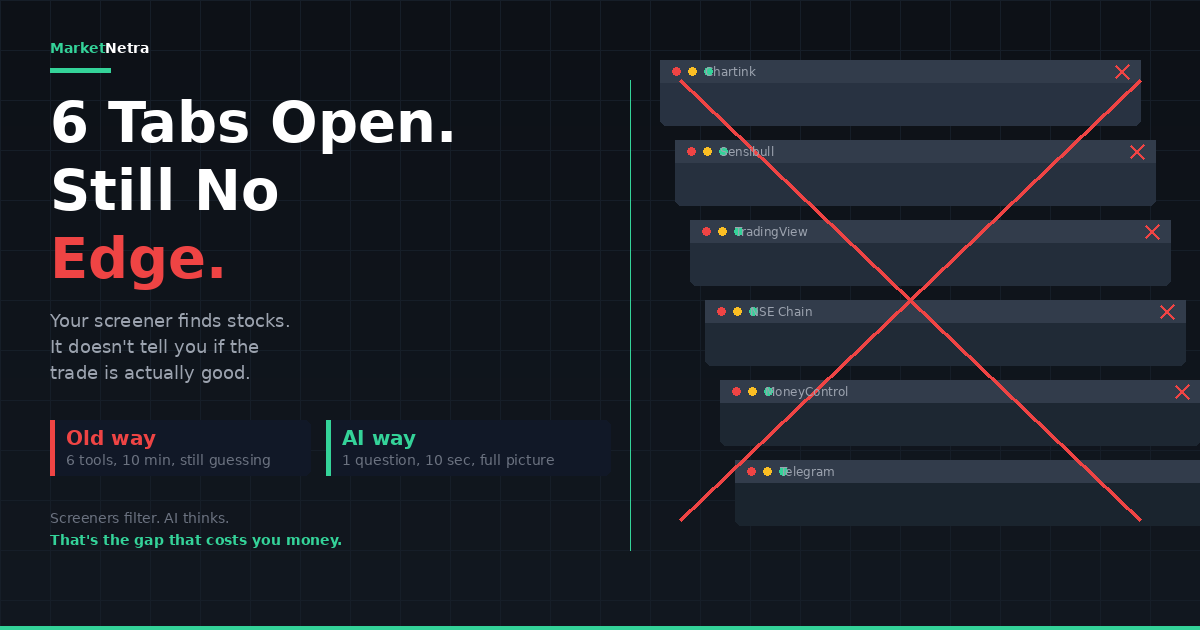You have Chartink, Sensibull, TradingView, and 3 other tabs open — but still no edge. Here's what AI trading tools do that screeners can't, and when you should use each.