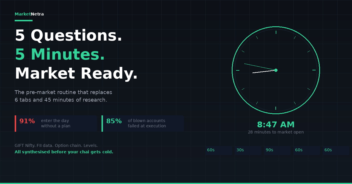 Most Indian traders start their day checking 6 tabs for 45 minutes. Here's a 5-question, 5-minute AI pre-market routine covering GIFT Nifty, FII/DII, option chains, and key levels.